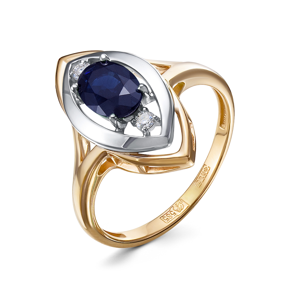 Кольцо из золота 585 пробы с бриллиантом и сапфиром (арт. 6432202238929420)