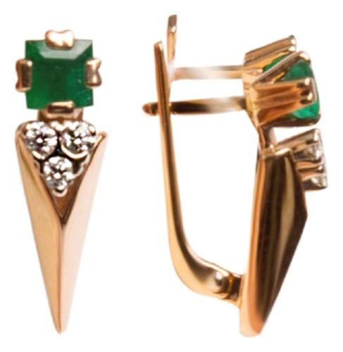 Серьги из золота 585 пробы с бриллиантом и изумрудом (арт. 6432202273301302)