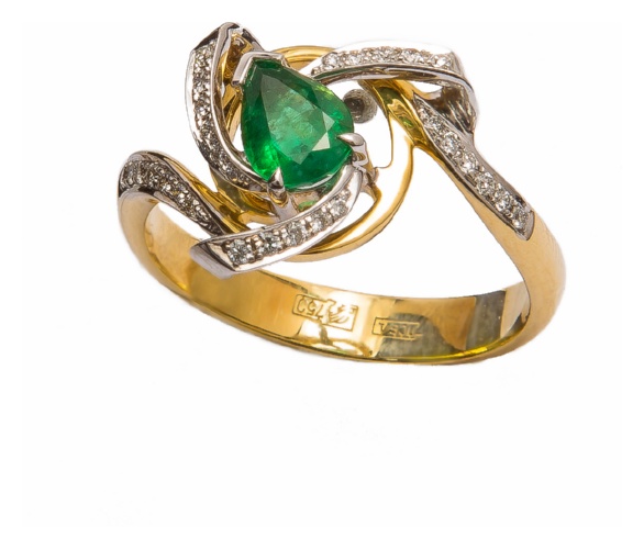 Кольцо из лимонного золота 750 пробы с бриллиантом и изумрудом (арт. 6432202273302814)