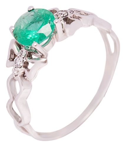 Кольцо из белого золота 585 пробы с бриллиантом и изумрудом (арт. 6432202273302367)