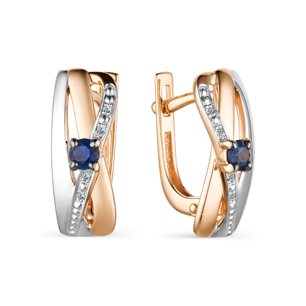 Серьги из золота 585 пробы с бриллиантом и сапфиром (арт. 6432202228504970)