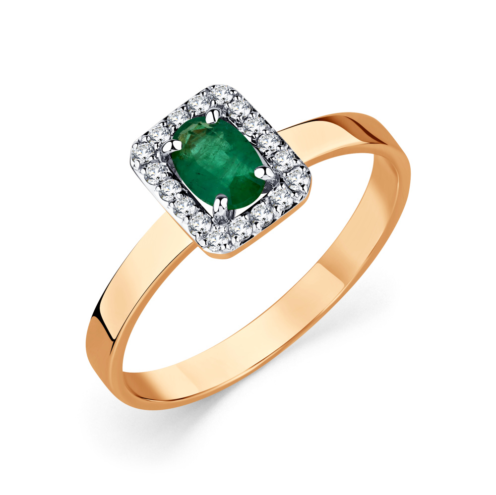 Кольцо из золота 585 пробы с бриллиантом и изумрудом (арт. 6432500428126488)