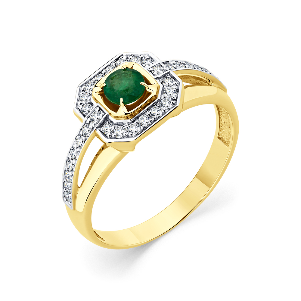 Кольцо из лимонного золота 585 пробы с бриллиантом и изумрудом (арт. 6432500088577941)